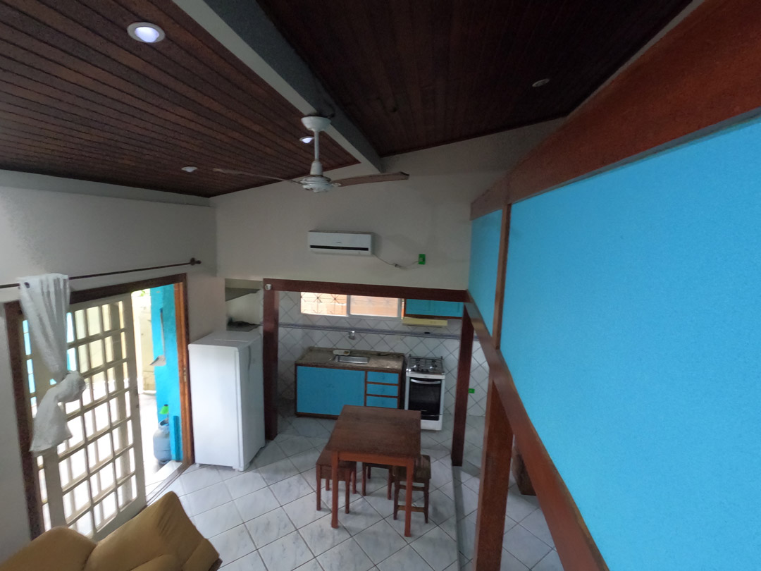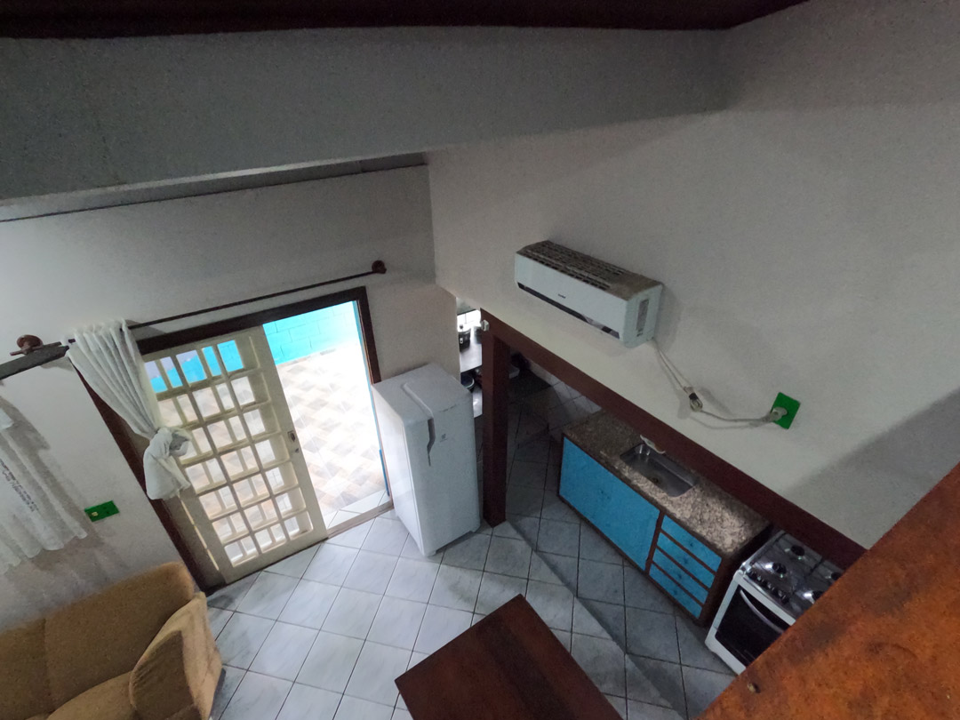 Tem cozinha completa, lavanderia e ar condicionado.