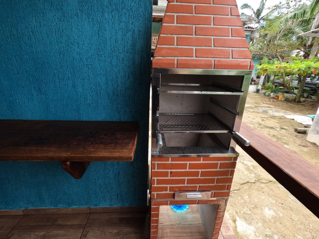 Varanda com uma churrasqueira. Perfeito para um grupo de até 10 pessoas.