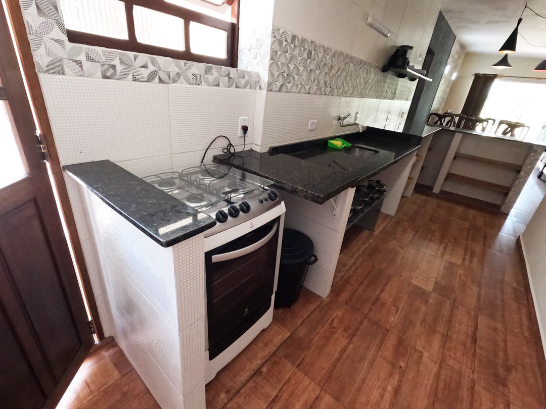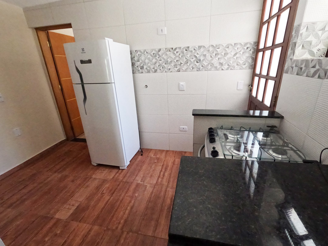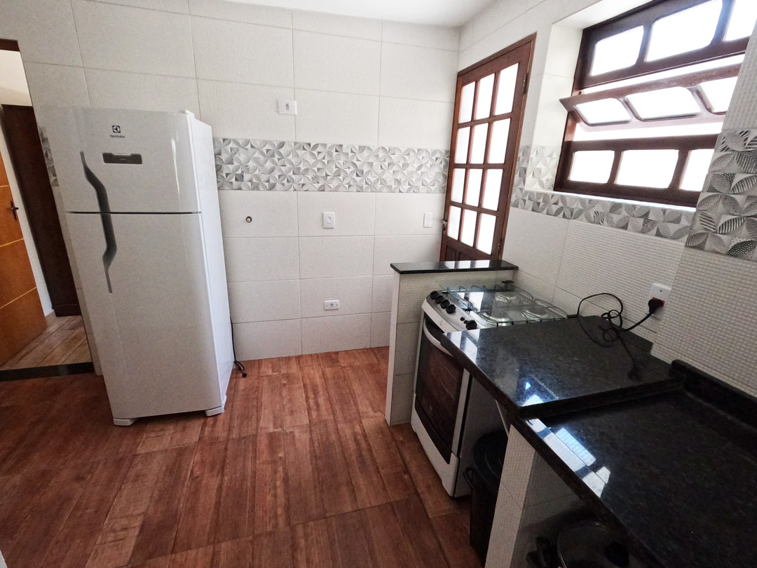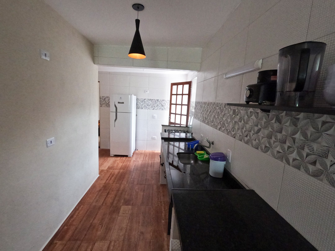 A Casa tem três quartos, cozinha completa e lavanderia.